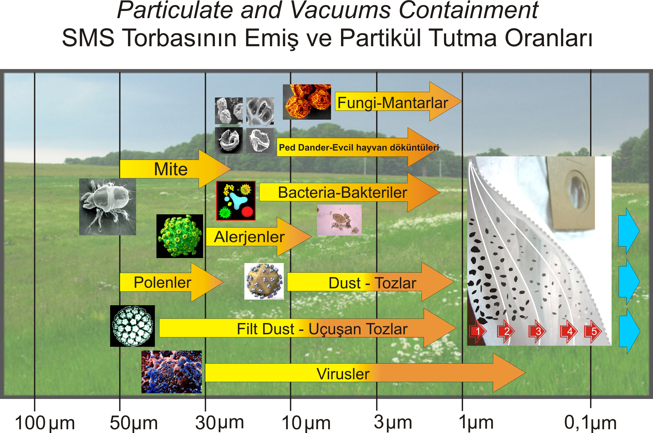 Spunbond - Meltblown - Spunbond birleşiminden oluşmuş, dokunmamış elyafın kesik veya filament halde olan micro liflerinden üretilmiş toz torbasıdır.